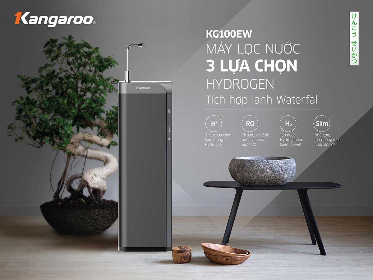 Máy lọc nước Kangaroo KG100EW sử dụng công nghệ tùy chọn Hydrogen độc quyền, giúp tạo nước Hydrogen ion kiềm ưu việt, bền vững với 3 mức Hydrogen khác nhau.