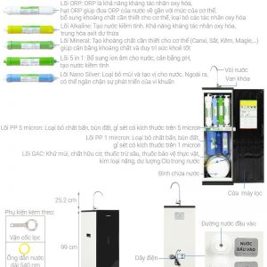 - Lõi 5 (Ceramic): Chia tách phân tử nước thành cụm phan tử nhỏ, dễ dàng hấp thụ vào cơ thể.